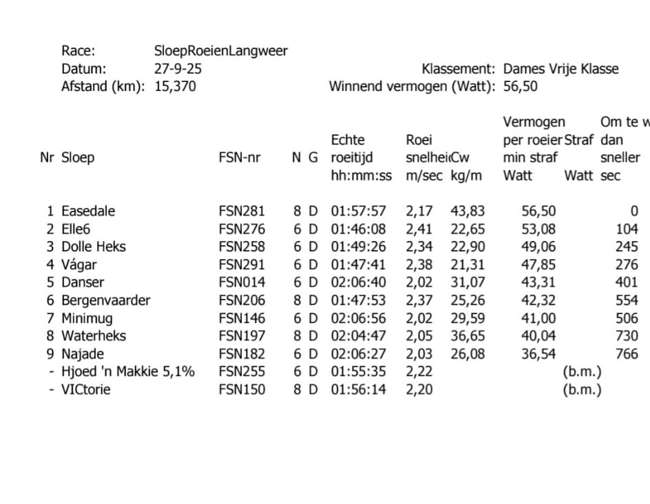 Spannend, de eerste wedstrijd voor ons, grotendeels, nieuwe roeiteam in de Elle6. Krachten meten in het klassement, waar zouden we landen?